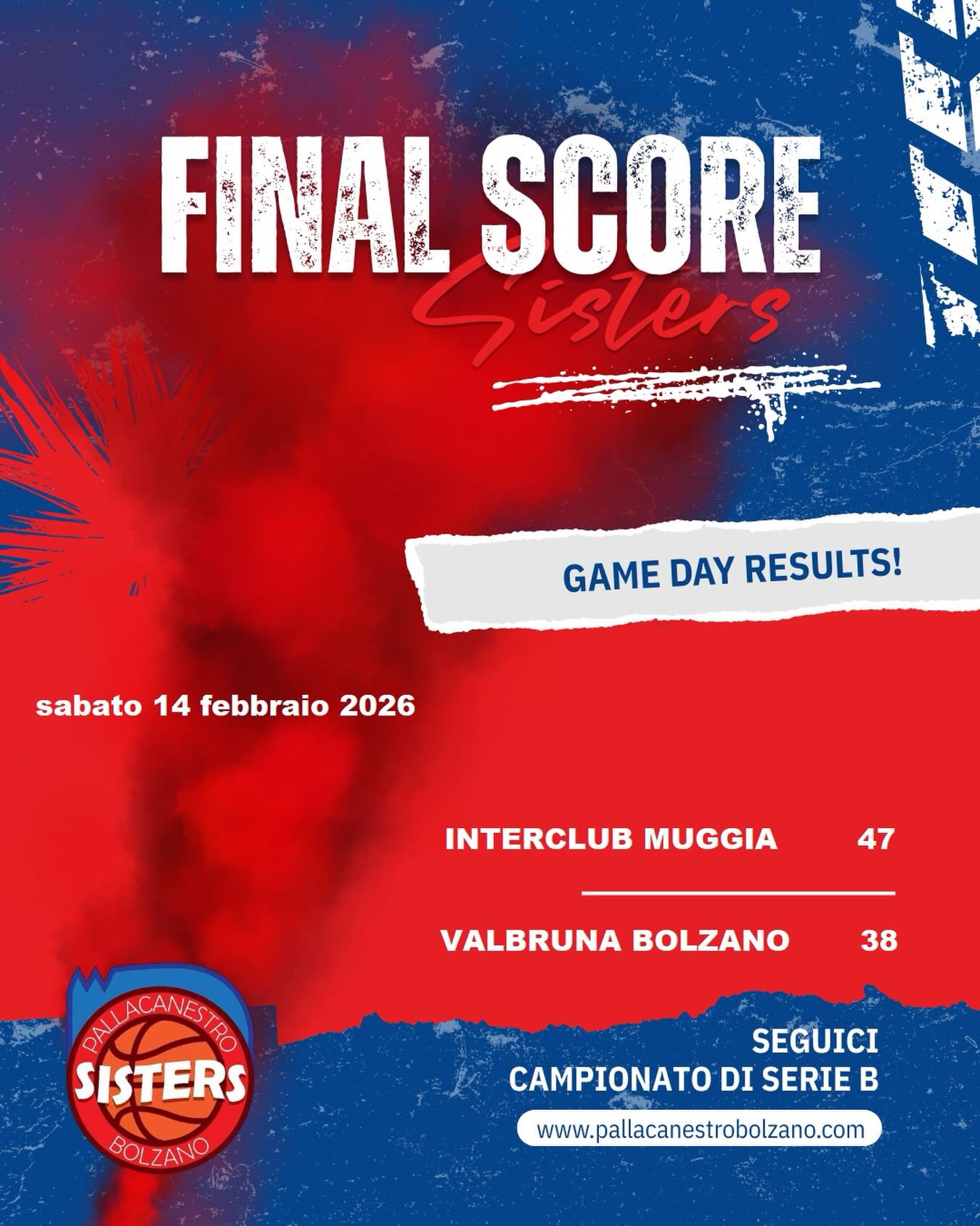 INIZIA IL GIRONE DI RITORNO CHE SPERIAMO MIGLIORE DI QUELLO DI ANDATA. MOLTI ALTI E MOLTI BASSI NELLO SPARTITO DELLE SISTERS. SIA A LIVELLO DI RISULTATI CHE A LIVELLO DI PRESTAZIONI INDIVIDUALI. SPERIAMO CHE IL 2026 PORTI UN MIGLIORAMENTO SOSTANZIALE ED UNA VOGLIA DI LASCIARE LA PARTE MENOP INTERESSANTE DELLA CLASSIFICA.